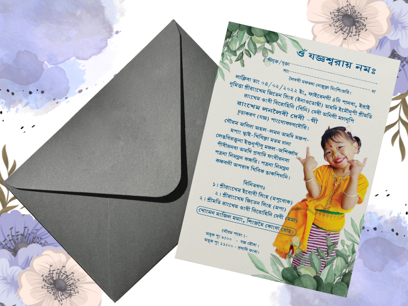 Card Size : 5 x 7(inches) Card Paper : Printed on 300gsm (matt paper) with customisable options on paper, colour for both inlay card and envelope Envelope Paper : Pearlescent (8010) 250gsm